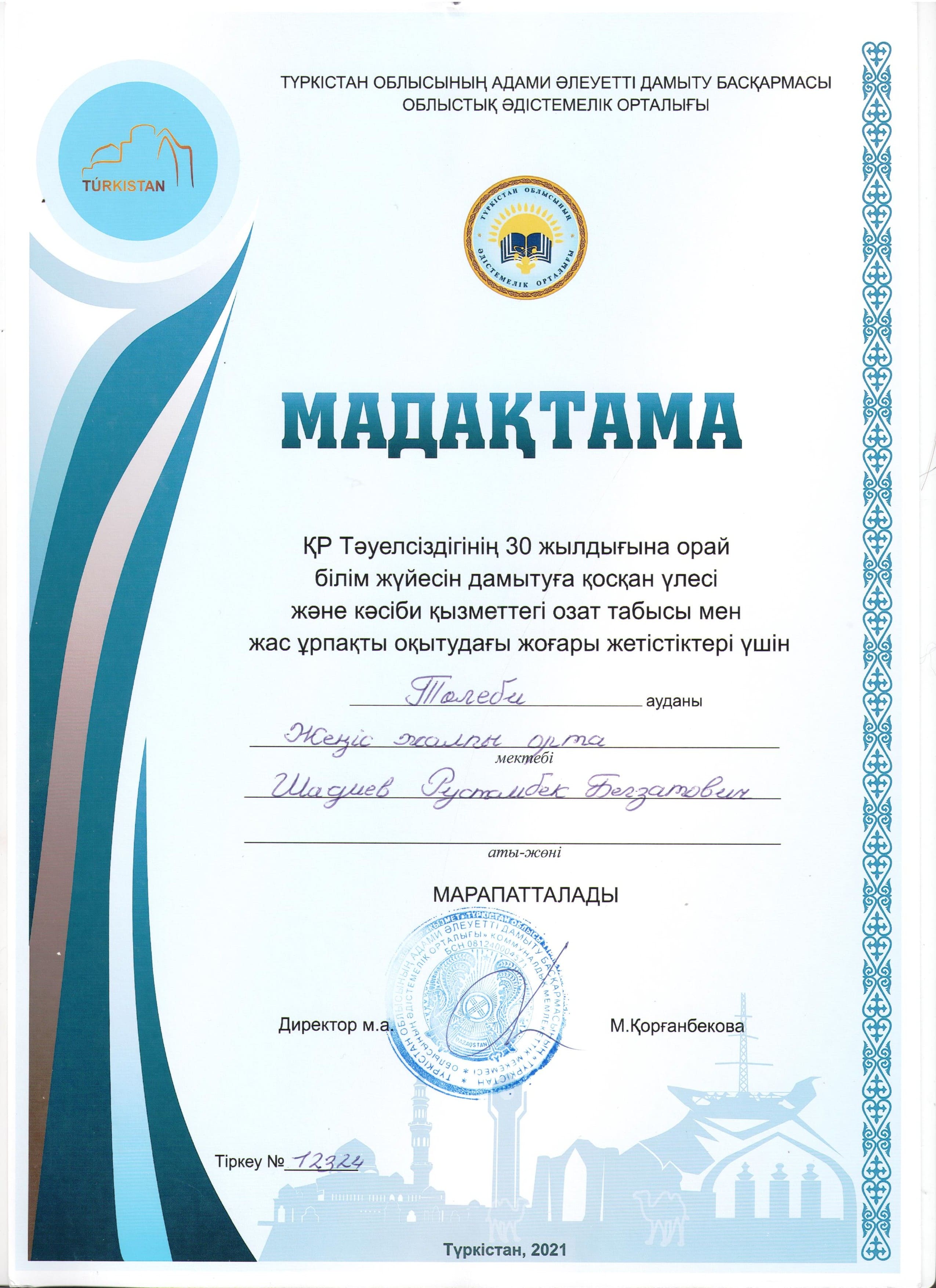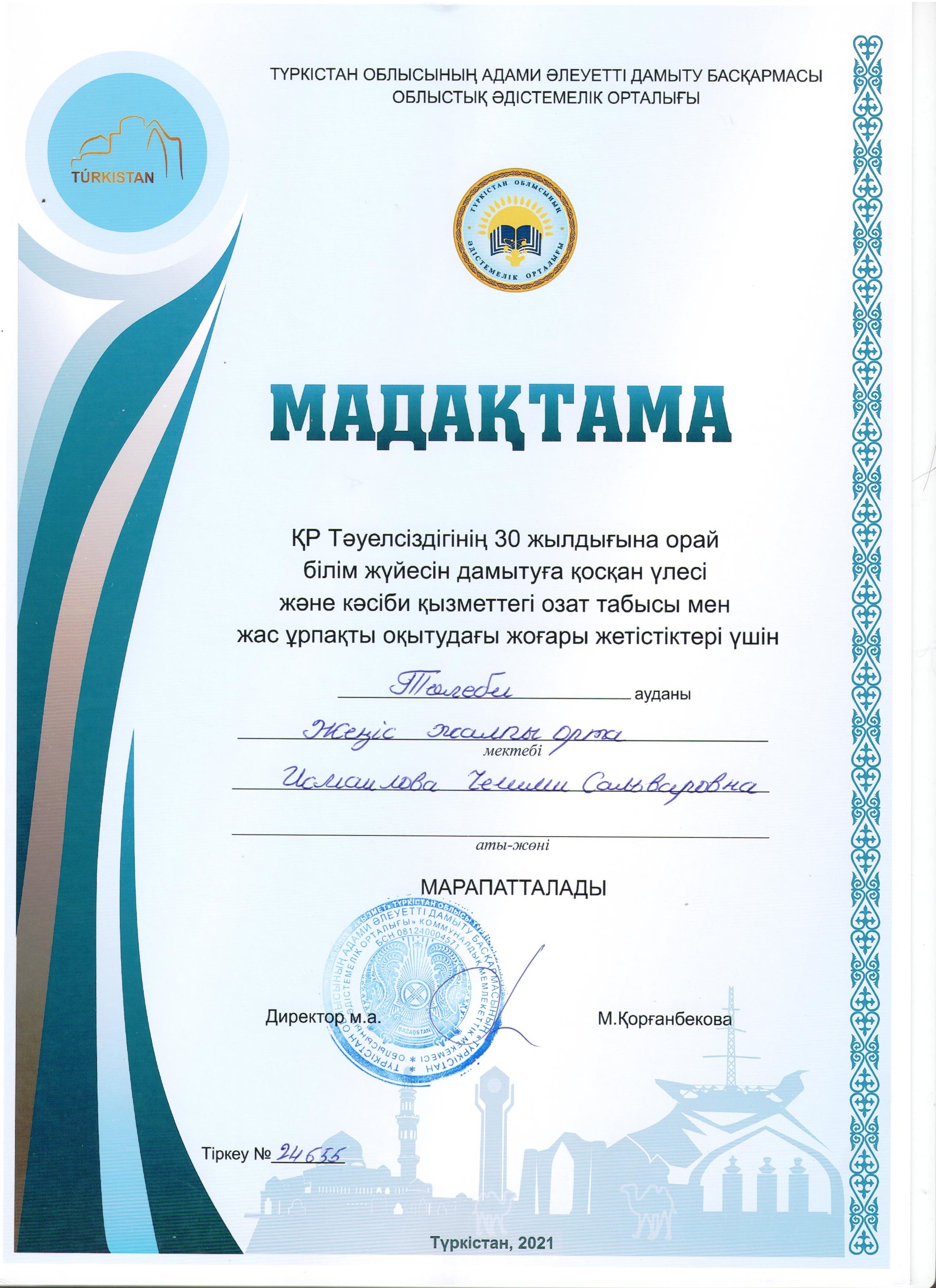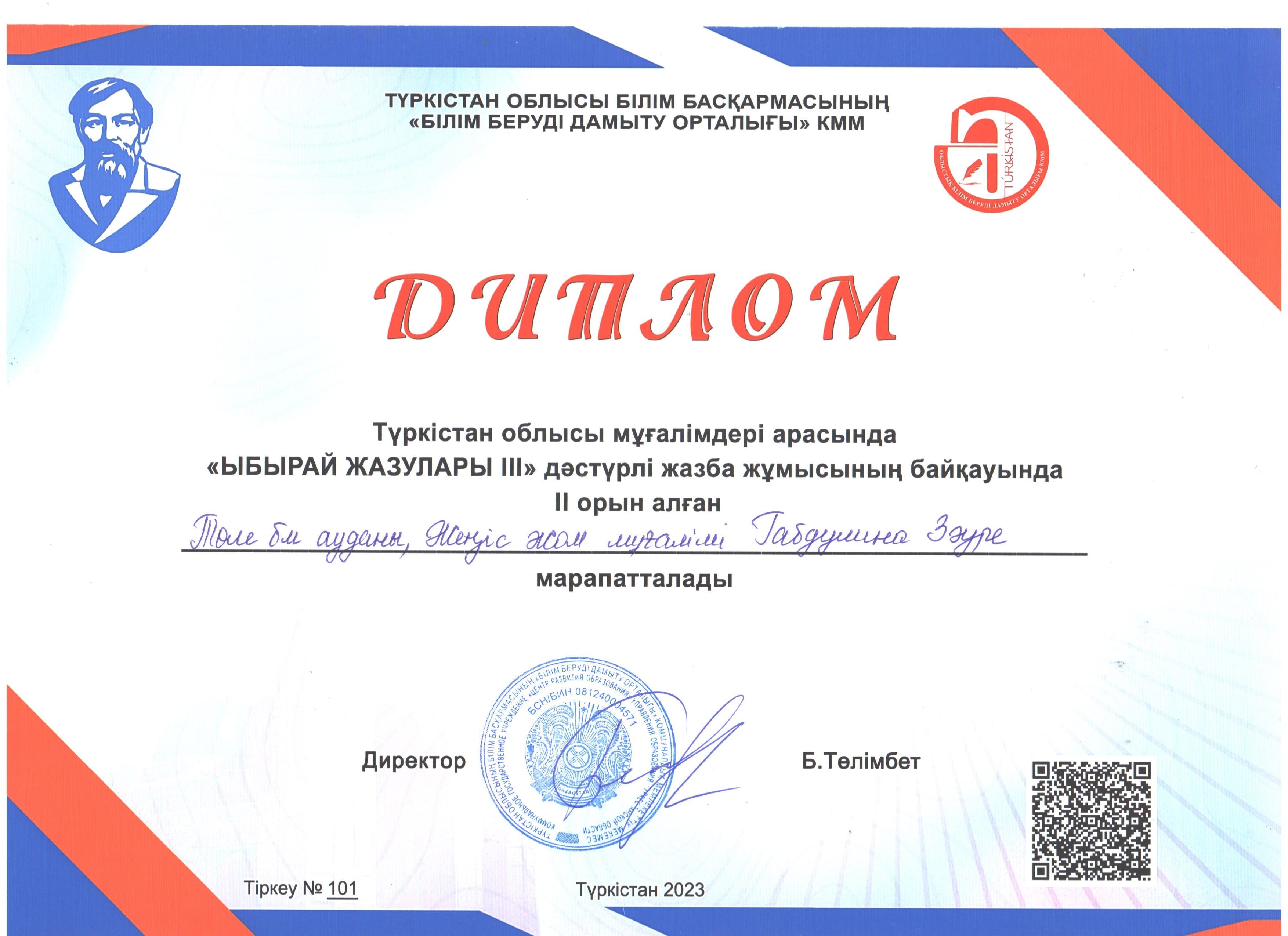 Түркістан облысы білім басқармасы Төлеби ауданының білім бөлімінің КММ